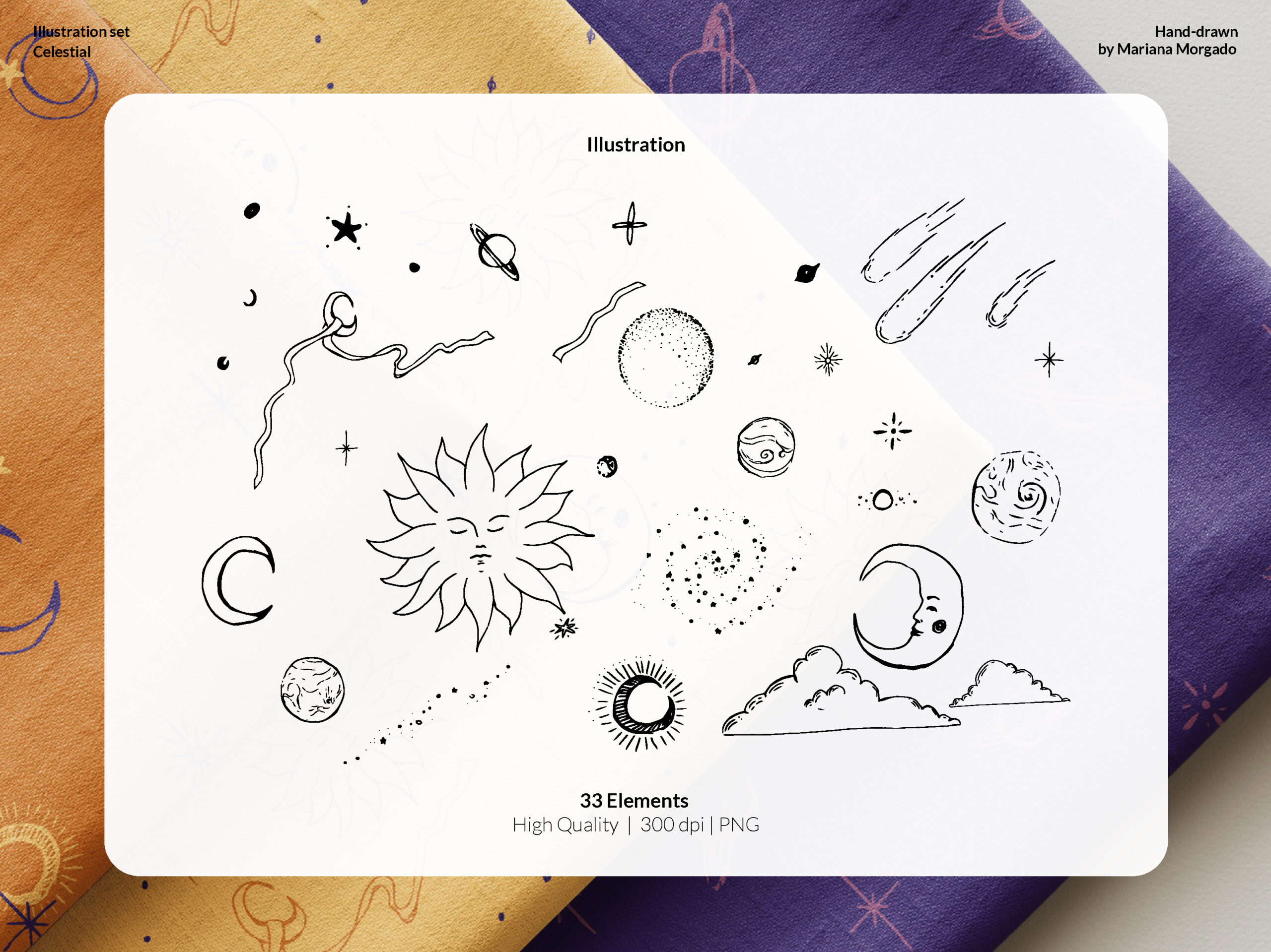 55 hand-drawn designs in PNG format, 300 DPI, with transparent background.