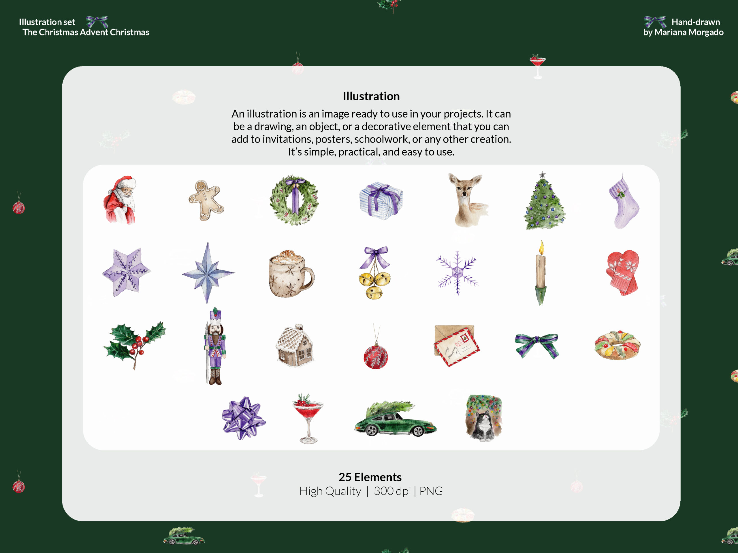 35 hand-drawn designs in PNG format, 300 DPI, with transparent background.